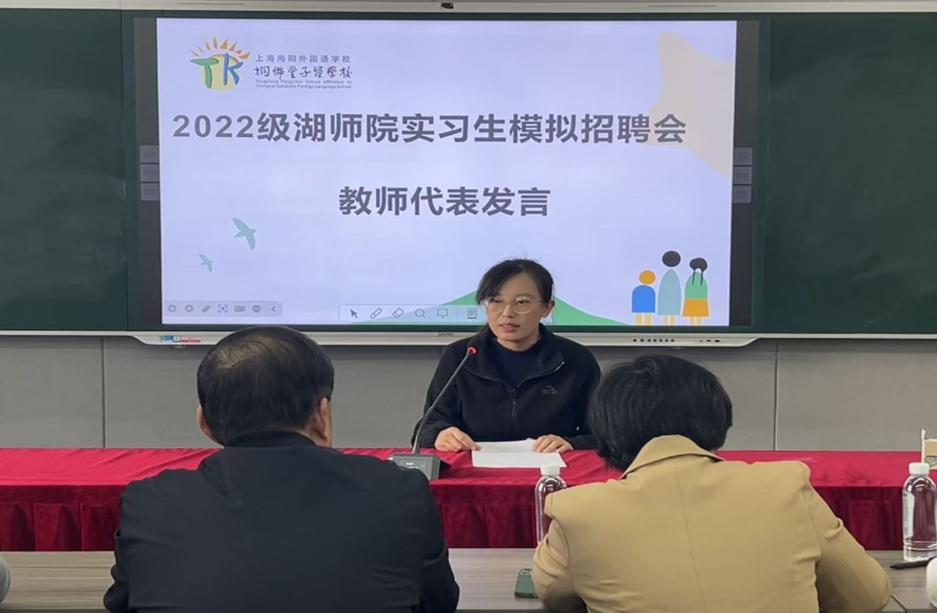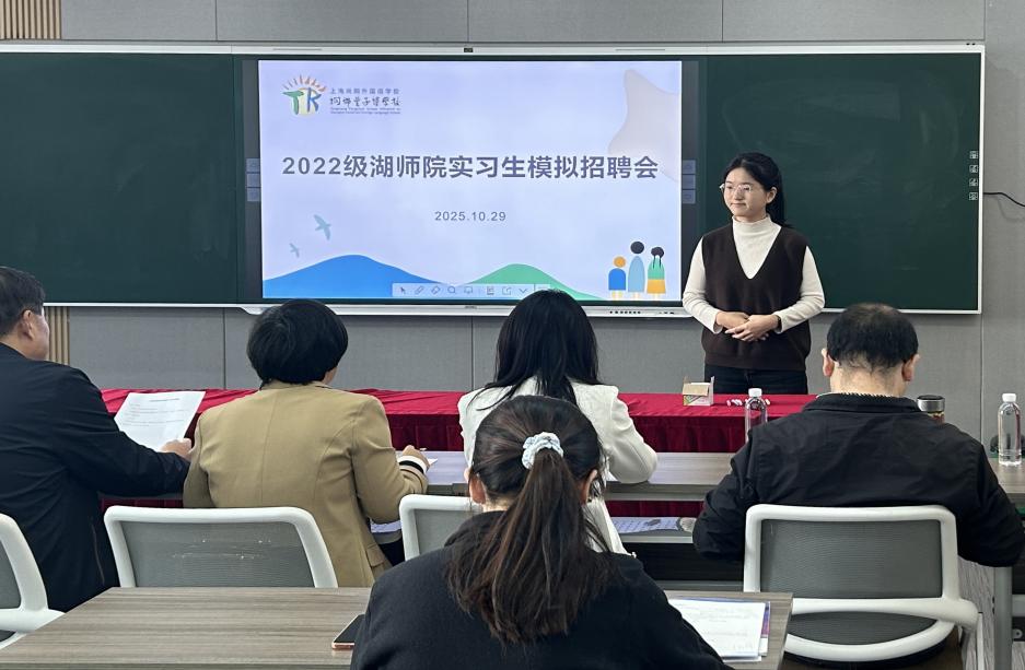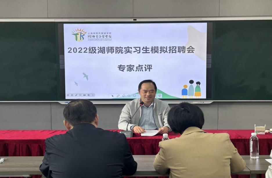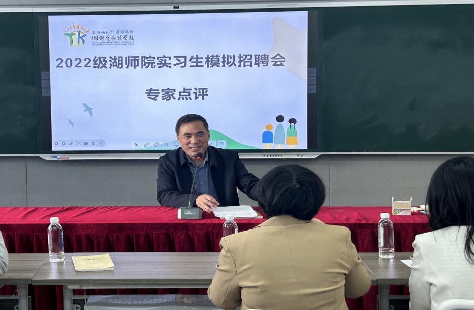 为帮助师范生熟悉教师招聘面试的基本流程,掌握面试技巧,近日,理学院联合上海尚阳外国语学校桐乡丰子恺学校举办2022级师范专业实习生模拟招聘会。桐乡市初中数学教研员赵立民,桐乡丰子恺学校党支部书记冯杰亮、主任楼勇刚,理学院副院长顾海霞、副书记蔡维超及实习带队老师吴利敏、叶昌出席活动。