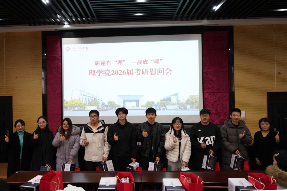 考研冲刺之际,为鼓舞学子斗志、传递学院关怀,理学院近日举办2026届考研慰问会。学院领导、教师代表及全体考研学子参加活动。