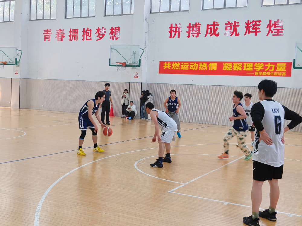 12月17日下午2点,湖州师范学院中校区篮球馆内气氛热烈、欢呼不断,由理学院工会和学工办牵头组织的师生篮球友谊赛在此精彩上演。本次比赛旨在促进师生交流,增强学院凝聚力,同时通过创新的赛制设计,突出“全员参与、趣味互动”的体育精神。