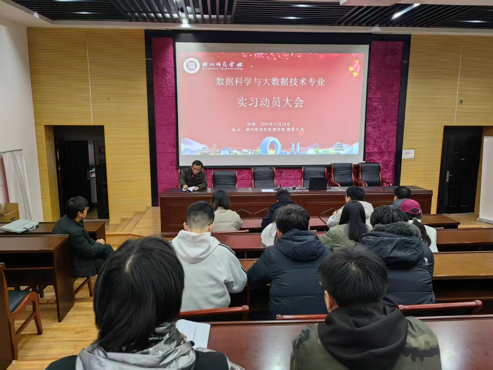 2025年12月24日,理学院数据科学与大数据技术专业2022级实习动员大会顺利召开。大会由系主任孟庆欣教授主持,2022级全体学生参加。本次大会旨在明确实习目标、任务和要求,解答学生疑惑,并为实习生提供针对性的指导和建议,帮助学生顺利完成实习任务。