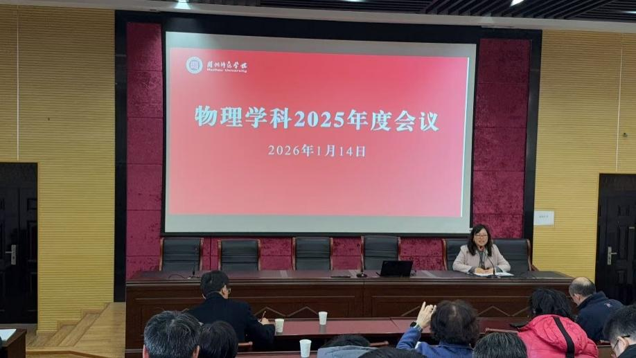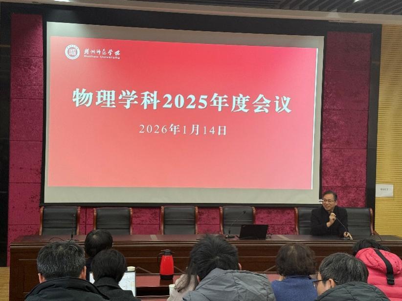 为系统总结过去一年物理学科建设成果,科学谋划新阶段发展蓝图,1月14日下午,由理学院物理系、应用物理系、湖州市物理学会共同主办的“物理学科2025年度工作会议”在理学之光报告厅隆重召开。物理学科全体教师、实验技术人员齐聚一堂,特邀相关领导及校内外顾问专家与会指导。会议由理学院院长沈彩万教授主持。